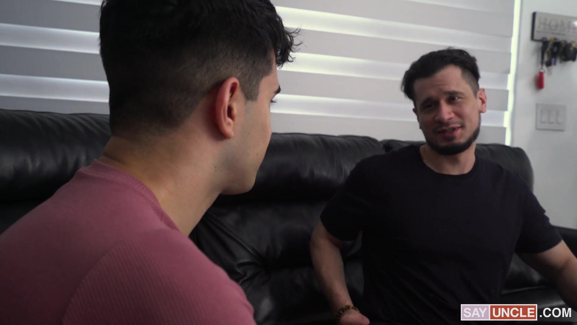 Sexy tattooed Shemale gives handjob to latino guy